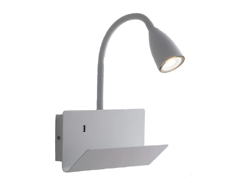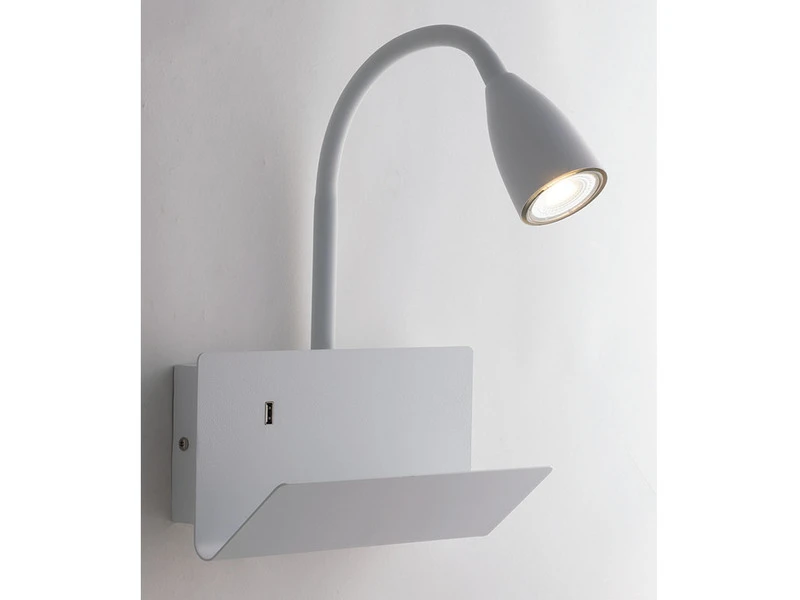 Die Wandleuchte verfügt über eine Ablage sowie einen USB Anschluss mit Ladefunktion, so dass elektronische Geräte wie Smartphones, Handys oder E-Books problemlos abgelegt und gleichzeitig geladen werden können.