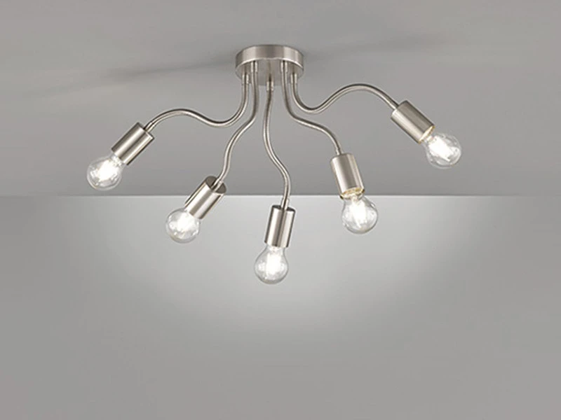 Der Deckenleuchter ist mit fünf E27 Fassungen ausgestattet und für Leuchtmittel max. je 40 Watt geeignet. Bei Verwendung von dimmbaren Leuchtmitteln sowie zusätzlichem Einbau eines Wanddimmers können Sie die Leuchte über Ihre Hausinstallation dimmen und so für eine ganz individuelle Beleuchtung sorgen.