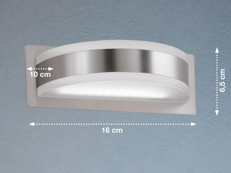 Die Wandleuchten haben eine Breite von jeweils 16 cm sowie eine Wandausladung von 10 cm. Die Brennstellen sind mit weiß matten Acrylglasabdeckungen versehen, so dass die Beleuchtung nach oben und unten angenehm blendfrei ist. Hinzu kommt, dass Sie die Leuchten über den Taster am Leuchtenkorpus stufenlos dimmen und zusätzlich die Lichtfarbe in drei Stufen einstellen können (tunable white). So können Sie Ihren Wohnraum ganz individuell ausleuchten.