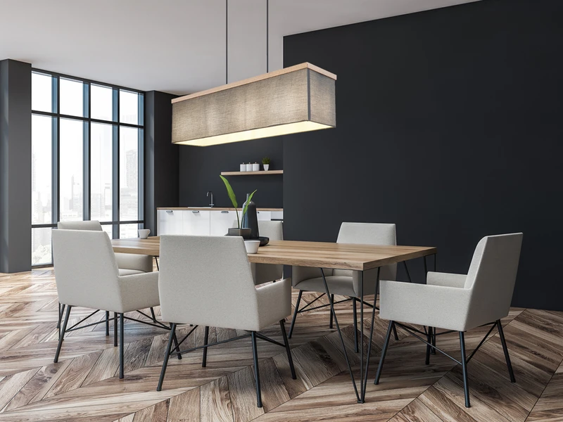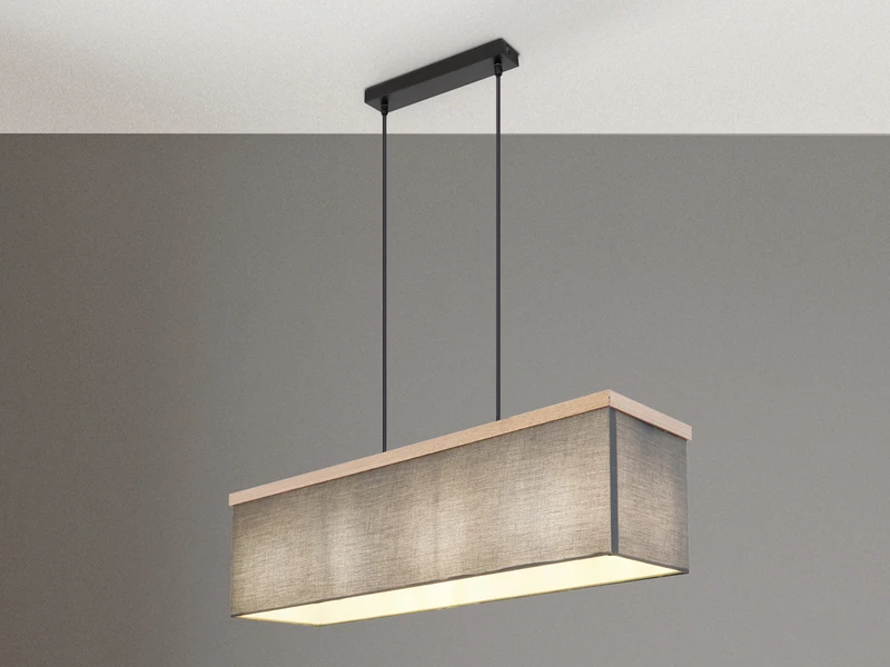 Diese stylische Hängelampe ergänzt mit ihrem schlichten Design jeden Wohn- und Schlafraum perfekt und eignet sich besonders für moderne Wohnstile mit Skadinavischem Charakter oder minimalistische Ambiente. Die Innenlampe lässt sich prima in verschiedene Einrichtungsstile integrieren und ist dank dem angesagten Materialmix aus anthrazitfarbigem Stoff und MDF in Holzoptik schon im Hellen ein wahrer Hingucker.