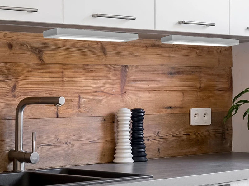 Gefertigt sind die Unterschrankleuchten aus robustem, grauem Kunststoff und lassen sich über ihren Ein/Aus Schalter einfach bedienen.