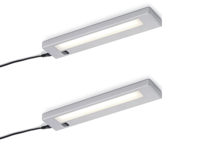 Dieses 2er SET LED Unterbauleuchten kommt ganz im dezenten Design daher und sorgt dennoch mit einem, in jeder Leuchte fest verbauten, 4 Watt LED Modul sowie einer Lichtleistung von 350 Lumen in Warmweiß für eine effektive Beleuchtung Ihrer Küchen Arbeitsflächen.