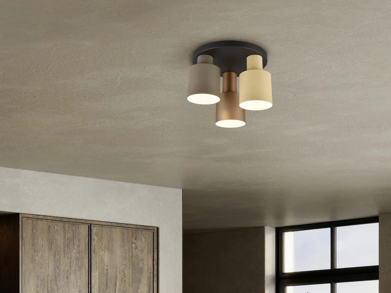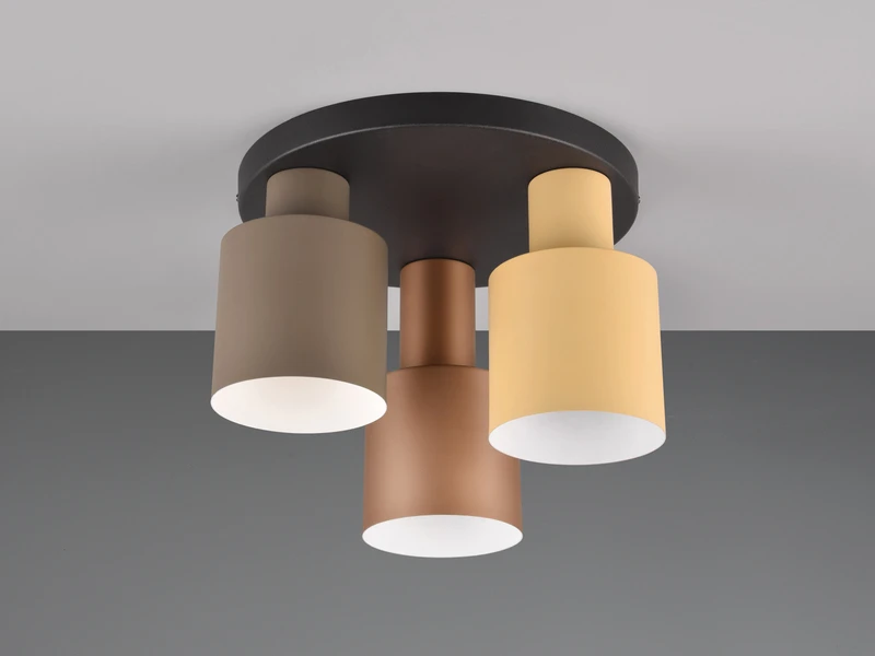 Durch die unterschiedlichen Höhen der Lampenschirme wird das stilvolle und elegante Design der Deckenleuchte wirkungsvoll unterstrichen. Im Eingangsbereich oder im Schlafzimmer wird die Deckenlampe bereits zum stilvollen Hingucker, bevor sie eingeschaltet ist. Die drei Lampenschirme aus Metall (Ø 12cm) bilden einen farblich attraktiven Kreis mit einem Durchmesser von 37cm und erzeugen ein angenehmes gerichtetes Licht. Sie können E27 Leuchtmittel bis 40 Watt aufnehmen.
