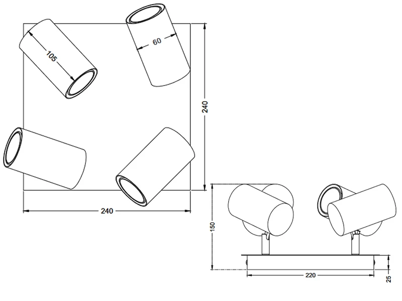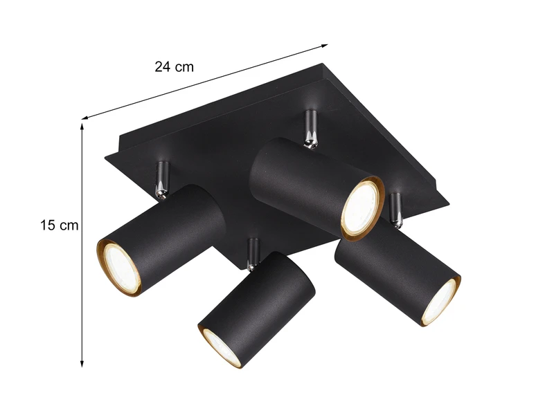 - Die Deckenleuchte ist mit vier GU10 Fassungen für max. 35 W ausgestattet
