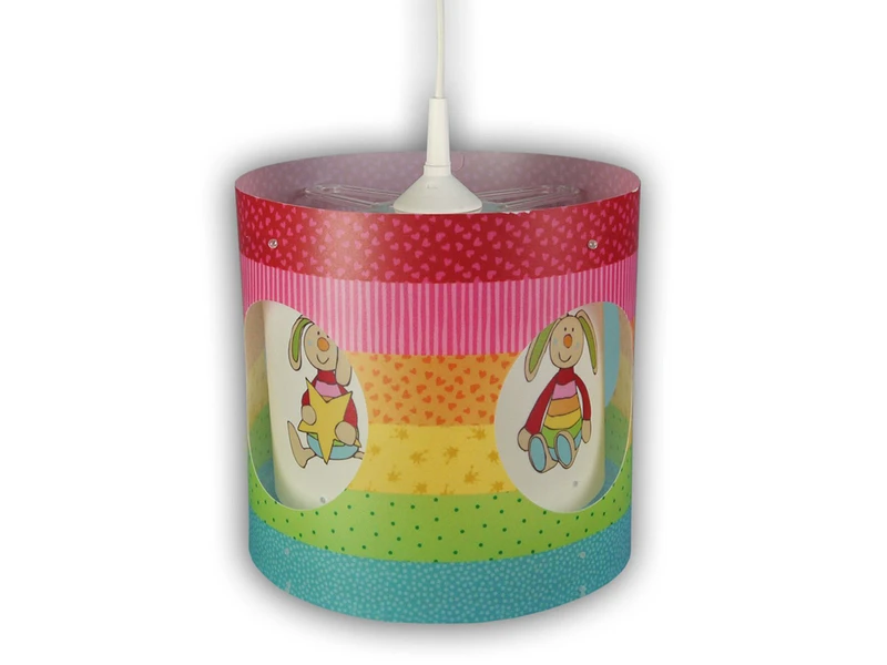 Das schöne Rabbit Motiv und der sich drehende innere Lampenschirm werden der Hingucker im Kinderzimmer. Ganz gleich ob Sie auf der Suche nach Kinderlampen für Mädchen – Kinderzimmerlampen für Jungen oder Lampen fürs Baby sind, mit der neutralen Farbgebung in Gelb /Rot / Grün und dem lustigen Motiv ist diese Kinder Deckenleuchte für Junge und Mädchen geeignet. Auch als Deckenlampe im Babyzimmer macht dieses Kinderlicht eine angenehme Atmosphäre.