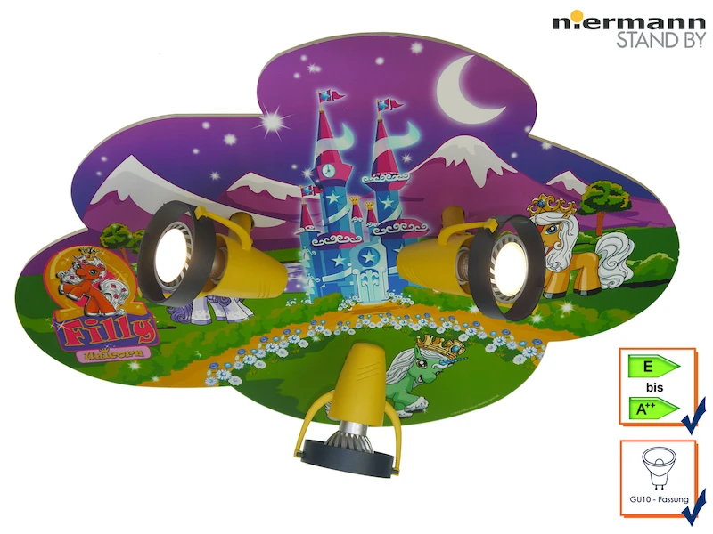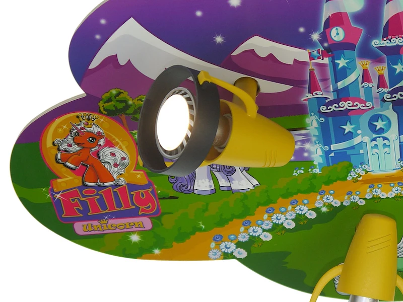 Diese farbenfrohe LED Kinderlampe sorgt mit ihrem Einhorn Filly Design für gute Laune sowie für viel Licht beim Spielen im Kinderzimmer.