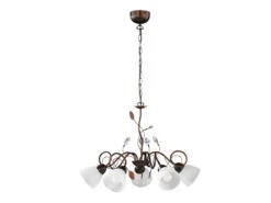 Trio Leuchten 5-flammiger Kronleuchter RUSTICA Landhausstil In Rostoptik Mit Glasschirmen