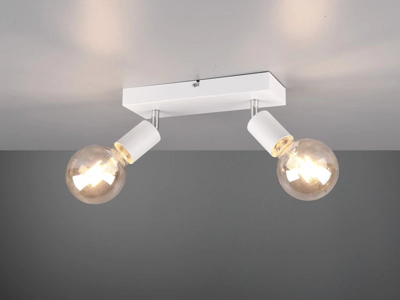 Richtig platziert sorgt der 2 flammige Deckenstrahler so in jedem Bereich Ihres Zuhauses für optimale Lichtverhältnisse. Bei der Auswahl des Leuchtmittels stehen Ihnen alle Türen offen, denn dank des coolen Designs in Weiß matt, sind Kombination mit transparenten aber auch amber-oder rauchfarbigen Leuchtmitteln möglich.