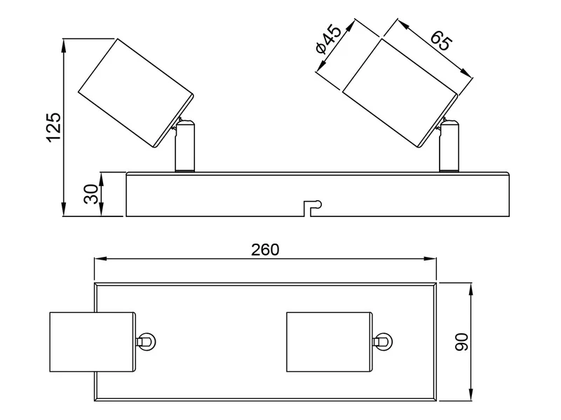 Die 2-flammige Deckenleuchte hat eine Höhe von 12cm, ist 26cm breit & 9cm tief, und ist zur Wand-& Deckenmontage geeignet.
