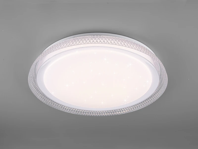 Die LED Deckenleuchte verspricht Lichtdesign in vollendeter Form. Die runde LED Lampe ist ein wahrer Verwandlungskünstler und erfüllt Ihnen jeden Lichtwunsch. Der klare Kristall-Rand und das weiße Starlight-Cover ergeben eine schlichte Farbgebung, die sich optimal kombinieren lässt.