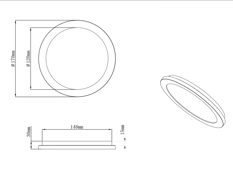 Die flache Deckenschale hat eine Höhe von nur 3cm und einen Durchmesser von 17cm, und lässt sich an Decke oder Wand montieren. Dank der klassischen Farbgestaltung in Schwarz matt und dem weißem Acryl, kann die Leuchte mit vielen Einrichtungsstilen kombiniert werden.