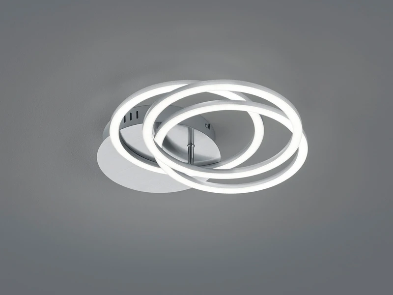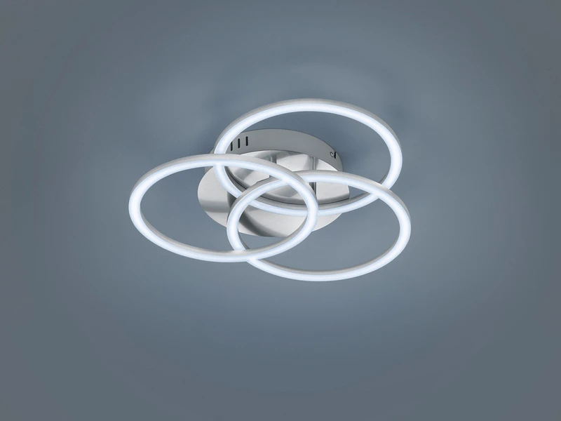 Die formvollendete Optik in Silber matt, fügt sich durch ihre Schlichtheit in viele Einrichtungsstile ein. Im Wohnzimmer, Flur oder im Schlafzimmer sorgt die 9cm flache Deckenleuchte mit einem Durchmesser von 43cm, wobei jeder Ring ca. 24cm misst, für das gewisse Etwas!