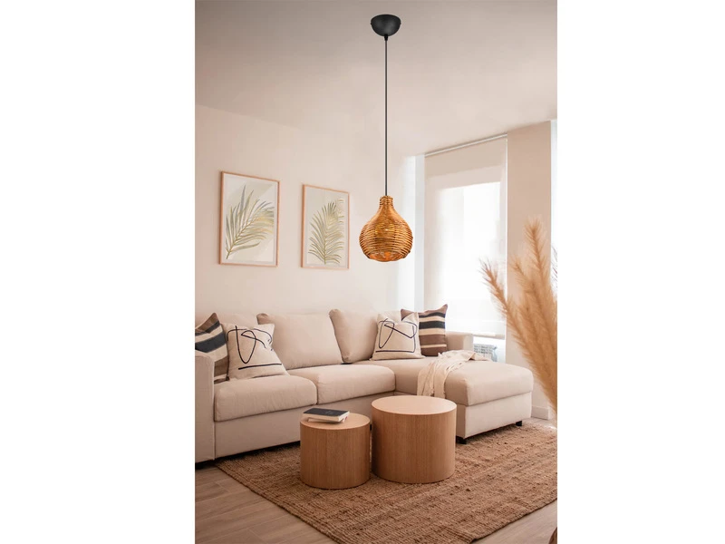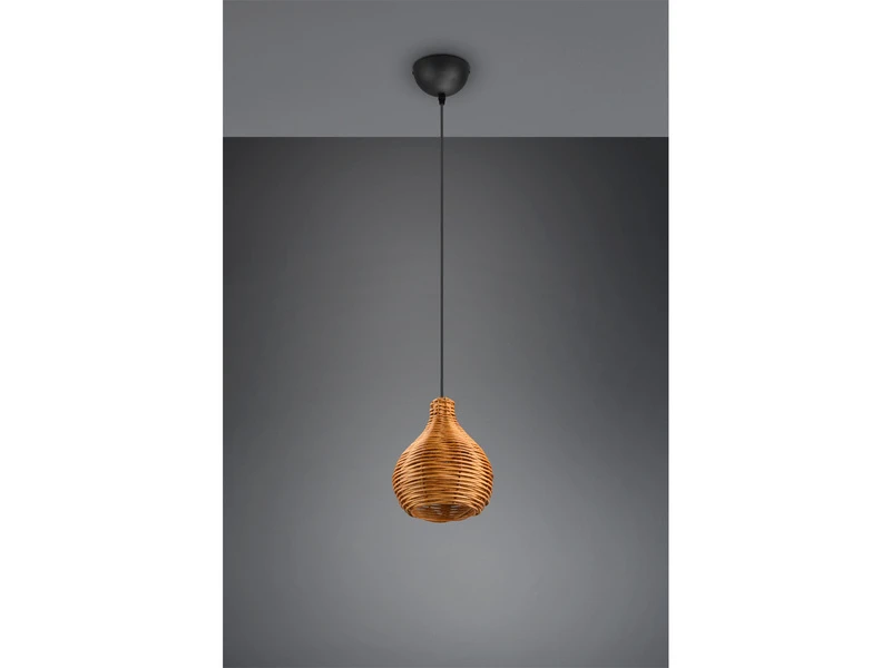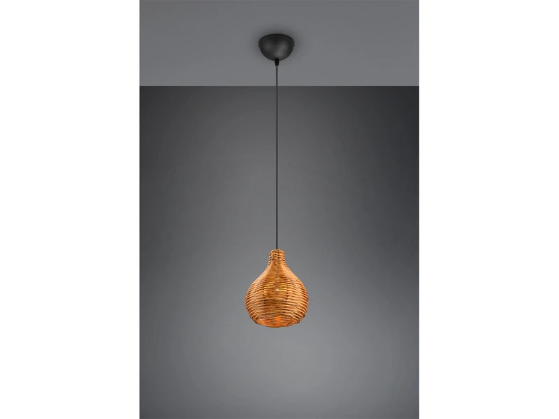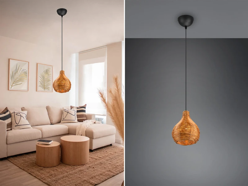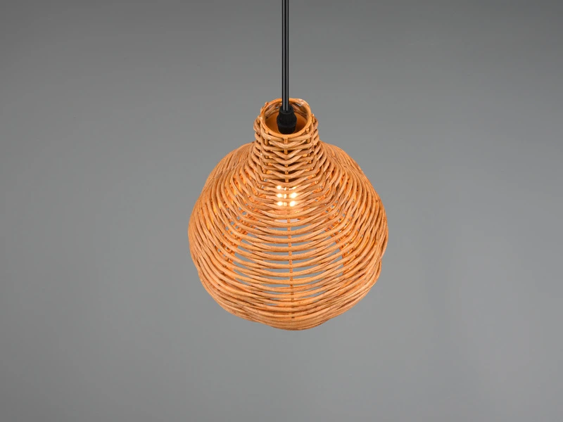 Im trendigen Rattangeflecht setzt die einflammige Pendelleuchte warme Akzente und bringt Gemütlichkeit in Ihr Zuhause.