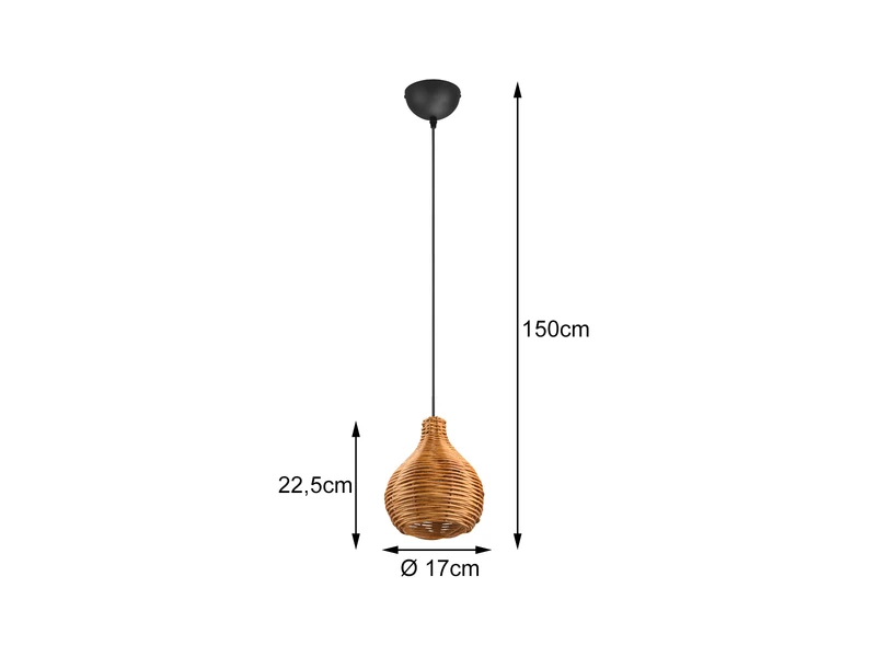Die Hängeleuchte mit 150cm Höhe (installationsabhängig) und einem Lampenschirm mit dem Durchmesser von 17cm überzeugt auch durch ihre vielfältigen Einsatzmöglichkeiten: