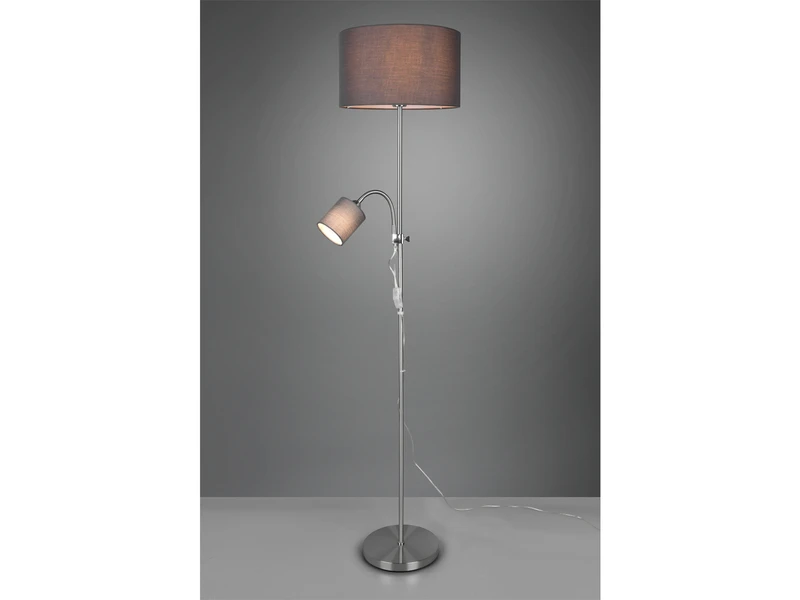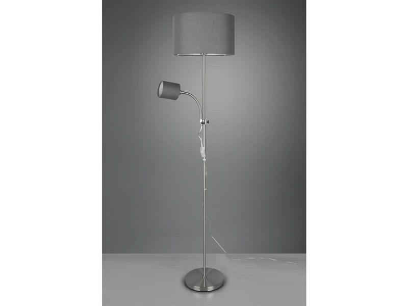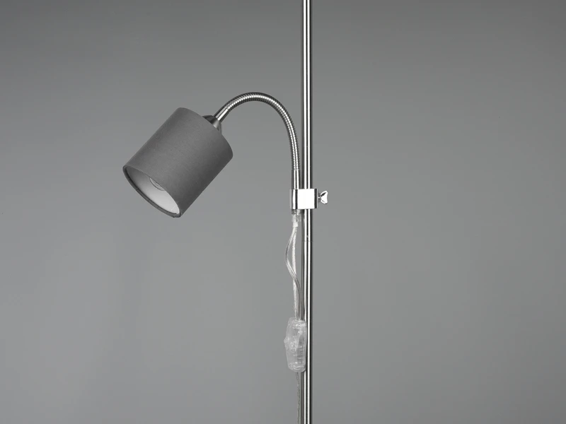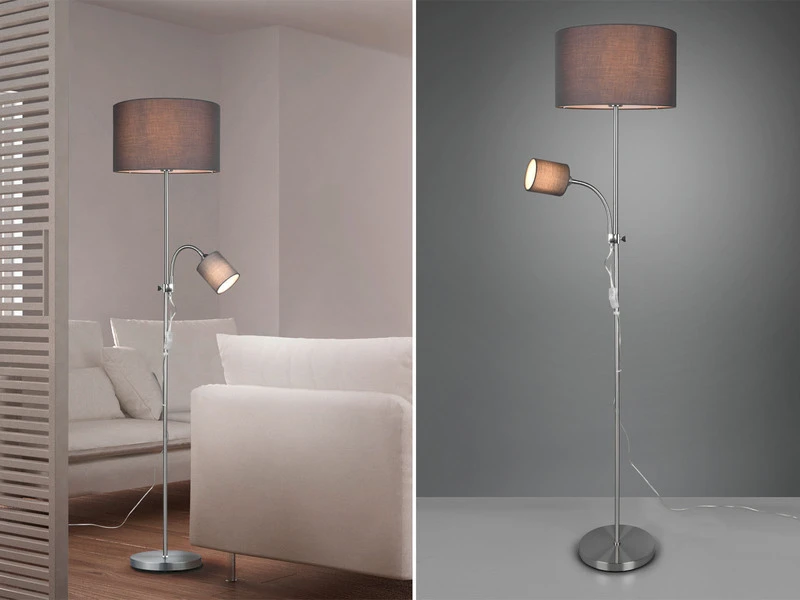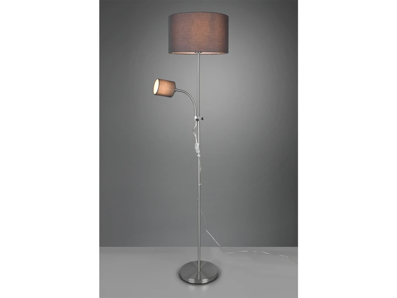 Die Stehleuchte ist mit einer E27 Fassung (Hauptlicht) sowie einer E14 Fassung (Leselicht) ausgestattet und für Leuchtmittel bis max. 42 Watt bzw. 10 Watt geeignet (nicht enthalten).