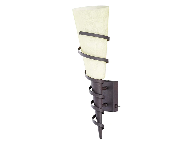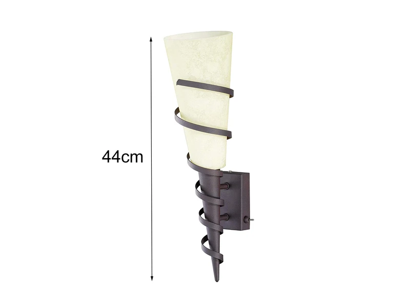 Mit ihrem rustikalen Charme verleiht die rostfarbige Wandlampe jedem Raum das gewisse etwas. Diese hochwertige Wandfackel überzeugt mit rustikal gestalteten Korpus aus Metall und dem edlen, Schirm aus Scavo Glas.