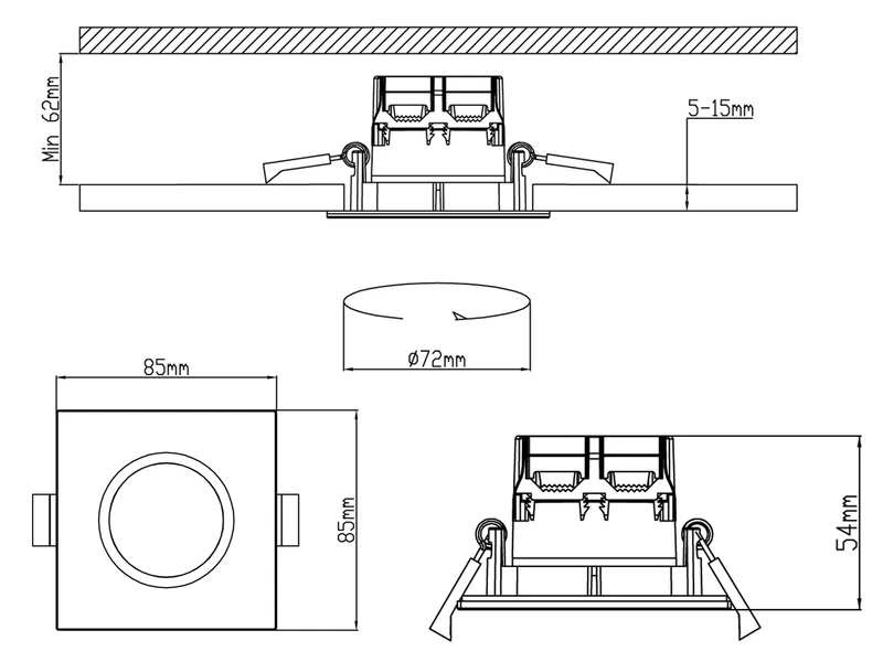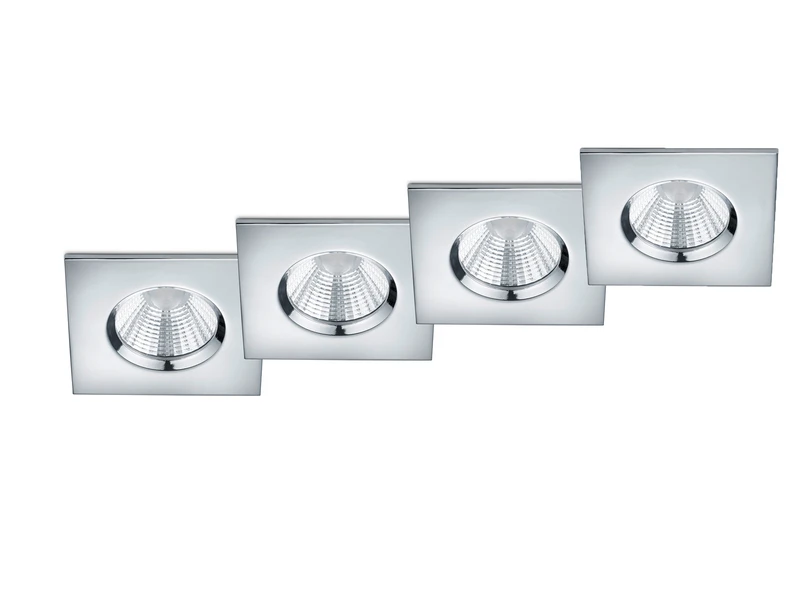 Trio Leuchten Eckiger LED Deckeneinbaustrahler 4er Set Dimmbar In Silber Chrom, IP65