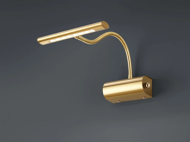 Der Leuchtenkopf ist durch ein Flexrohr flexibel einstellbar, was eine effektive Bild-oder Wandbeleuchtung garantiert. Darüber hinaus lässt sich die Leuchte über den seitlich integrierten Drehdimmer individuell dimmen und ist mit einem fest verbauten SMD-LED mit einer Leistung von 4 Watt und 380 Lumen in warmweiß ausgestattet.