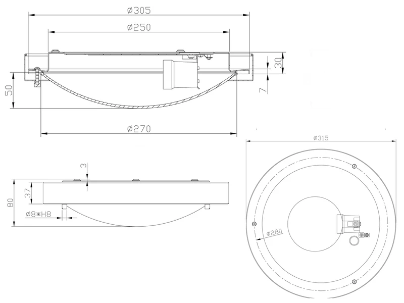 Die flache Leuchte ist mit einer E27 Fassung ausgestattet und für Leuchtmittel mit max. 60 Watt geeignet, sie wird mit einem dimmbaren LED Leuchtmitteln mit 7 Watt, 560 Lumen & 3000 Kelvin in Warmweiß geliefert.