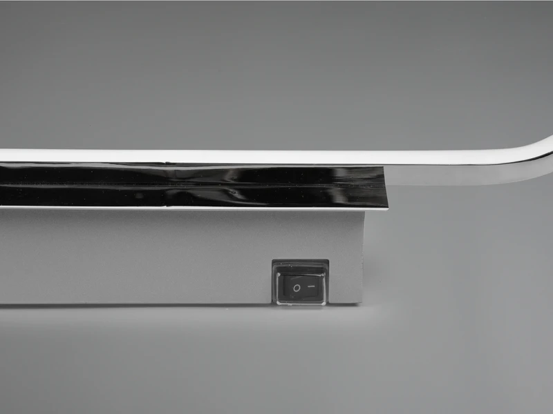 Der Chrom glänzende Metallkorpus verleiht der Badezimmer Lampe eine exklusive Optik. Mit einer Breite von 40 cm und einer Ausladung von 14,8 cm ist sie auch für kleinere Bäder gut geeignet und überzeugt durch ihr effektives, aber dennoch blendfreies Licht.