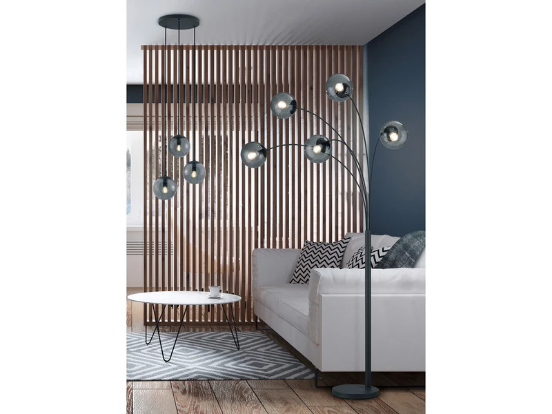 Bogenleuchten sind eine elegante Wahl, um Ihrem Zuhause einen Hauch von Raffinesse zu verleihen. Und wenn es um beeindruckende Ausmaße, hochwertiges Design und praktische Funktionalität geht, dann ist die 180cm große Bogenleuchte mit 85cm Ausladung und 5 Rauchglas-Kugel-Lampenschirmen die perfekte Wahl.