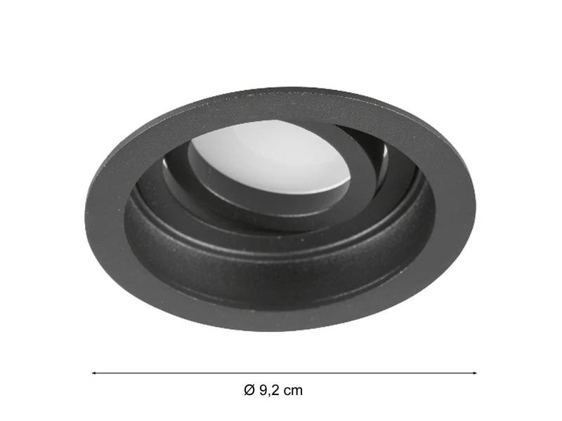 Die Einbaulampe aus Metall hat einen Durchmesser von 9,2 cm und eine Höhe von 10 cm. Für den Einbau wird ein 8,5 cm großer Ausschnitt und eine Einbautiefe von min. 11 cm benötigt.