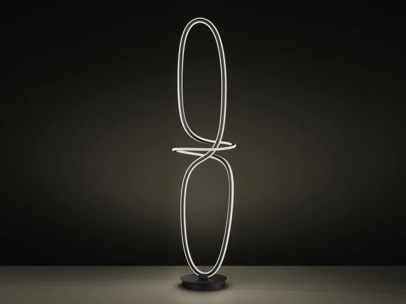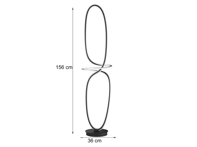 Durch ihr verschlungenes Erscheinungsbild und das modere Farbdesign wird die 156cm hohe Stehlampe schnell zum Eycatcher in Ihren Räumen. Mit der Farbe Schwarz setzt sie gekonnt Akzente und lässt sich in viele Einrichtungsstile integrieren.