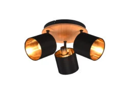 Reality Leuchten Deckenstrahler Rund TOMMY 3 Flammig Holz & Stoffschirme In Schwarz Gold