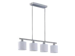 MeineWunschleuchte LED Pendelleuchte 4 Flammig Silber Matt Weiße Stofflampenschirme