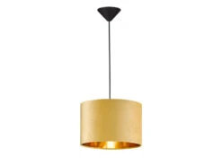 MeineWunschleuchte LED Pendelleuchte Mit Lampenschirm Samt Gelb – Innen Gold Ø 30cm