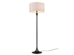 MeineWunschleuchte Klassische LED Stehleuchte Schwarz Mit Stoffschirm In Weiß – Höhe 155cm