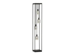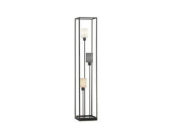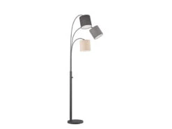 MeineWunschleuchte LED Stehlampe Mehrflammig Schwarz 3 Lampenschirme Leinen – 186cm Groß