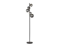 Fischer & Honsel LED Stehleuchte BALA 5 Flammig Schwarz Mit Rauchglas Kugeln, Höhe 150cm