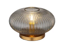 Globo Tischleuchte NORMY Aus Rauchglas Rillenglas Messing, Ø 30cm