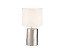 Fischer & Honsel Tischleuchte PRATA Keramikfuß Silber Antik & Stoffschirm Leinen Weiß, Höhe 35cm