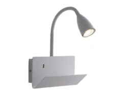 ECO-LIGHT LED Wandlampe Grau Mit Stoff Lampenschirm, USB Lampe Mit Ladefunktion & Ablage